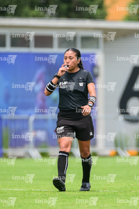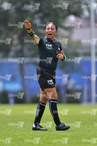 Toluca, Estado de México, 8 de abril de 2026. Jennifer Nenetzy Morales, árbitra central, durante el partido correspondiente a los Cuartos de Final del torneo 2026 de la Liga BBVA MX categoría Sub14, entre los Tuzos del Pachuca y los Xolos de Tijuana, realizado en las instalaciones de la Federación Mexicana de Futbol. Foto: Imago7/ Alexis Chavez