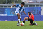 Axel Eduardo Martínez, durante el partido correspondiente a los Cuartos de Final del torneo 2026 de la Liga BBVA MX categoría Sub14, entre los Tuzos del Pachuca y los Xolos de Tijuana, realizado en las instalaciones de la Federación Mexicana de Futbol. Foto: Imago7/ Arturo Hernandez
