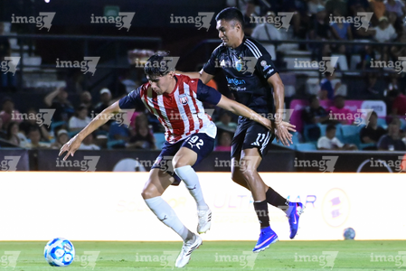 Cancún, Quintana Roo, 26 de abril de 2026. Carlos Hernández y Christopher Trejo, durante el partido correspondiente a la vuelta de los Cuartos de Final del torneo Clausura 2026 de la Liga BBVA Expansión MX, entre Cancún FC y el CD Tapatío, realizado en el estadio Andrés Quintana Roo. Foto: Imago7/ Edgar Uluac