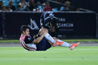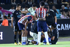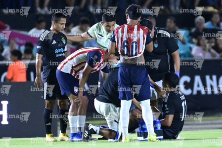 Cancún, Quintana Roo, 26 de abril de 2026. Christopher Trejo resultó lesionado, durante el partido correspondiente a la vuelta de los Cuartos de Final del torneo Clausura 2026 de la Liga BBVA Expansión MX, entre Cancún FC y el CD Tapatío, realizado en el estadio Andrés Quintana Roo. Foto: Imago7/ Edgar Uluac