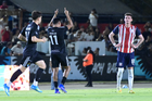 Cancún, Quintana Roo, 26 de abril de 2026. Christopher Trejo en festejo, durante el partido correspondiente a la vuelta de los Cuartos de Final del torneo Clausura 2026 de la Liga BBVA Expansión MX, entre Cancún FC y el CD Tapatío, realizado en el estadio Andrés Quintana Roo. Foto: Imago7/ Edgar Uluac