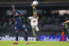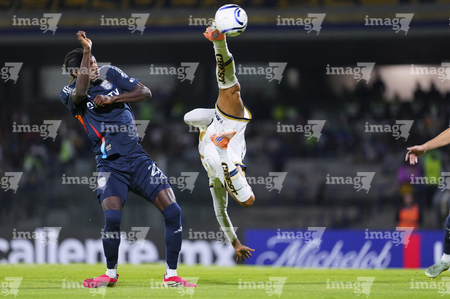 Ciudad de México, 10 de febrero de 2026. Juninho Vieira ejecuta tijera, durante el partido de vuelta de la primera ronda de la Champions Cup de la CONCACAF 2026, entre los Pumas de la UNAM y el San Diego FC, realizado en el estadio Olímpico Universitario. Foto: Imago7/ Manlio Contreras