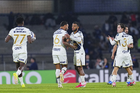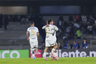 Ciudad de México, 10 de febrero de 2026. Nathan Silva y Pedro Vite en festejo de gol, durante el partido de vuelta de la primera ronda de la Champions Cup de la CONCACAF 2026, entre los Pumas de la UNAM y el San Diego FC, realizado en el estadio Olímpico Universitario. Foto: Imago7/Etzel Espinosa