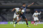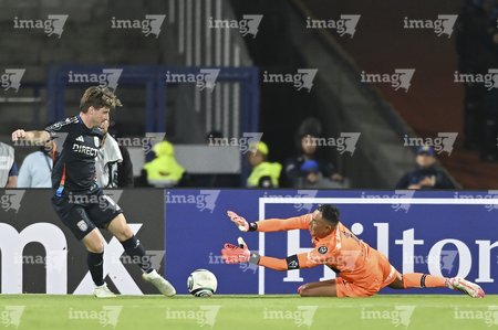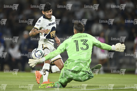 Ciudad de México, 10 de febrero de 2026. Anders Dreyer y Keylor Navas, durante el partido de vuelta de la primera ronda de la Champions Cup de la CONCACAF 2026, entre los Pumas de la UNAM y el San Diego FC, realizado en el estadio Olímpico Universitario. Foto: Imago7/Etzel Espinosa