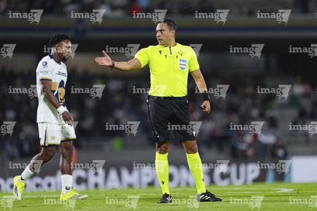 Ciudad de México, 10 de febrero de 2026. Héctor Said Martínez, árbitro central, durante el partido de vuelta de la primera ronda de la Champions Cup de la CONCACAF 2026, entre los Pumas de la UNAM y el San Diego FC, realizado en el estadio Olímpico Universitario. Foto: Imago7/ Manlio Contreras