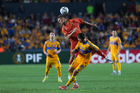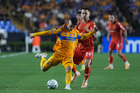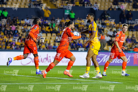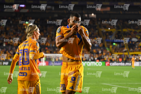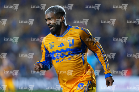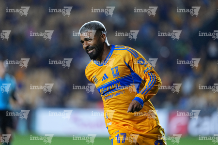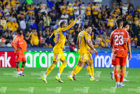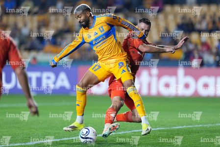 San Nicolás de los Garza, 10 de febrero de 2026. Rodrigo Aguirre (I), durante el partido de vuelta de la primera ronda de la Champions Cup de la CONCACAF 2026, entre los Tigres de la UANL y el Forge FC, realizado en el estadio Universitario. Foto: Imago7/ Andrea Jiménez