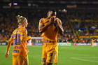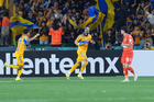 San Nicolás de los Garza, 10 de febrero de 2026. Rodrigo Aguirre anota gol, durante el partido de vuelta de la primera ronda de la Champions Cup de la CONCACAF 2026, entre los Tigres de la UANL y el Forge FC, realizado en el estadio Universitario. Foto: Imago7/ Andrea Jiménez