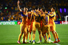 San Nicolás de los Garza, 10 de febrero de 2026. Marcelo Flores, Ángel Correa, André-Pierre Gignac y Osvaldo Rodríguez en festejo de gol, durante el partido de vuelta de la primera ronda de la Champions Cup de la CONCACAF 2026, entre los Tigres de la UANL y el Forge FC, realizado en el estadio Universitario. Foto: Imago7/ David Arzamendi