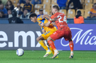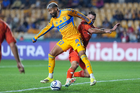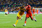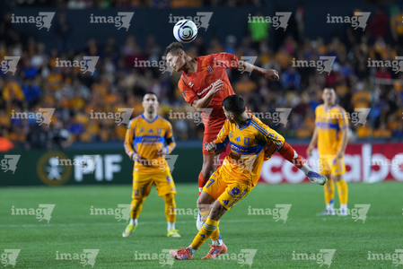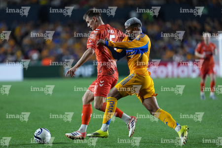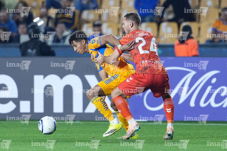 San Nicolás de los Garza, 10 de febrero de 2026. Dan Nimick y Rodrigo Aguirre, durante el partido de vuelta de la primera ronda de la Champions Cup de la CONCACAF 2026, entre los Tigres de la UANL y el Forge FC, realizado en el estadio Universitario. Foto: Imago7/ Andrea Jiménez