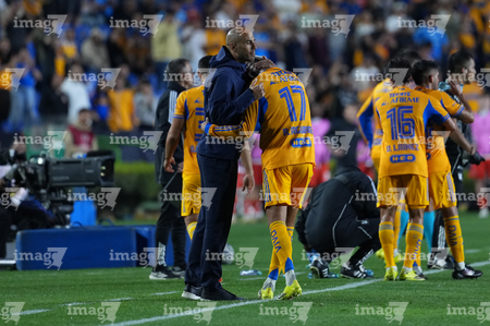 San Nicolás de los Garza, 10 de febrero de 2026. Guido Pizarro, director técnico y Rodrigo Aguirre en festejo de gol, durante el partido de vuelta de la primera ronda de la Champions Cup de la CONCACAF 2026, entre los Tigres de la UANL y el Forge FC, realizado en el estadio Universitario. Foto: Imago7/ Andrea Jiménez