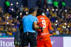 San Nicolás de los Garza, 10 de febrero de 2026. Fernando Gorriarán en reclamo a Juan Gabriel Calderón, árbitro central, durante el partido de vuelta de la primera ronda de la Champions Cup de la CONCACAF 2026, entre los Tigres de la UANL y el Forge FC, realizado en el estadio Universitario. Foto: Imago7/ Nora Pamela