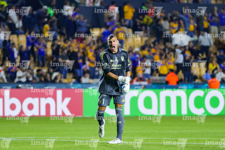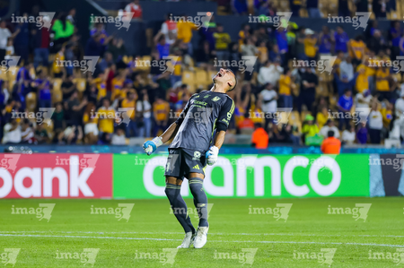 San Nicolás de los Garza, 10 de febrero de 2026. Nahuel Guzmán en festejo, durante el partido de vuelta de la primera ronda de la Champions Cup de la CONCACAF 2026, entre los Tigres de la UANL y el Forge FC, realizado en el estadio Universitario. Foto: Imago7/ Nora Pamela