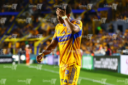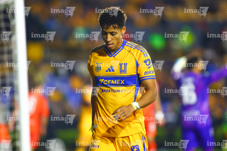 San Nicolás de los Garza, 10 de febrero de 2026. Ozziel Herrera en lamento, durante el partido de vuelta de la primera ronda de la Champions Cup de la CONCACAF 2026, entre los Tigres de la UANL y el Forge FC, realizado en el estadio Universitario. Foto: Imago7/ David Arzamendi
