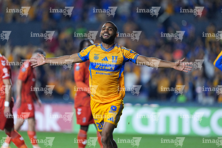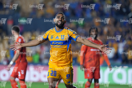 San Nicolás de los Garza, 10 de febrero de 2026. Brian Wright en festejo de gol, durante el partido de vuelta de la primera ronda de la Champions Cup de la CONCACAF 2026, entre los Tigres de la UANL y el Forge FC, realizado en el estadio Universitario. Foto: Imago7/ Nora Pamela