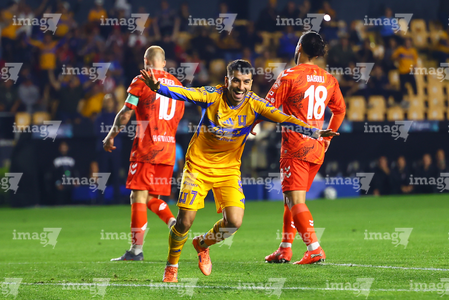 San Nicolás de los Garza, 10 de febrero de 2026. Ángel Correa en festejo de gol, durante el partido de vuelta de la primera ronda de la Champions Cup de la CONCACAF 2026, entre los Tigres de la UANL y el Forge FC, realizado en el estadio Universitario. Foto: Imago7/ David Arzamendi