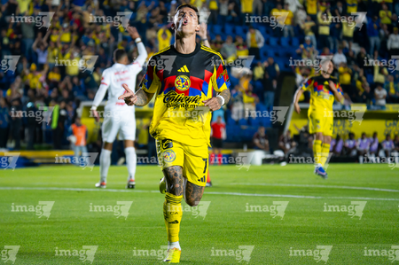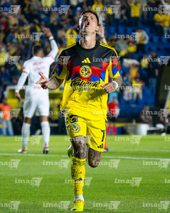 Ciudad de México, 11 de febrero de 2026. Brian Rodríguez en festejo de gol anulado, durante el partido de vuelta de la primera ronda de la Champions Cup de la CONCACAF 2026, entre las Águilas del América y el CD Olimpia, realizado en el estadio Ciudad de los Deportes. Foto: Imago7/Diego Padilla