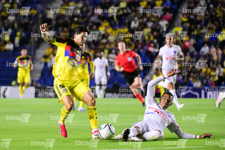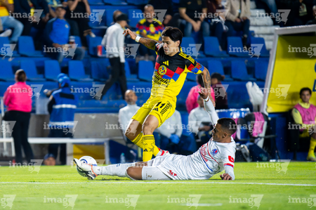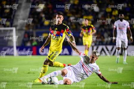 Ciudad de México, 11 de febrero de 2026. Víctor Dávila y Carlos Sanchez, durante el partido de vuelta de la primera ronda de la Champions Cup de la CONCACAF 2026, entre las Águilas del América y el CD Olimpia, realizado en el estadio Ciudad de los Deportes. Foto: Imago7/Diego Padilla