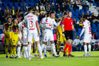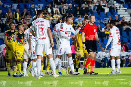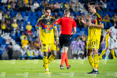 Ciudad de México, 11 de febrero de 2026. Jugadores del CD Olimpia en reclamo a Drew Fischer árbitro central, durante el partido de vuelta de la primera ronda de la Champions Cup de la CONCACAF 2026, entre las Águilas del América y el CD Olimpia, realizado en el estadio Ciudad de los Deportes. Foto: Imago7/Diego Padilla
