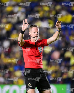 Ciudad de México, 11 de febrero de 2026. Drew Fischer, árbitro central, durante el partido de vuelta de la primera ronda de la Champions Cup de la CONCACAF 2026, entre las Águilas del América y el CD Olimpia, realizado en el estadio Ciudad de los Deportes. Foto: Imago7/Diego Padilla