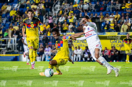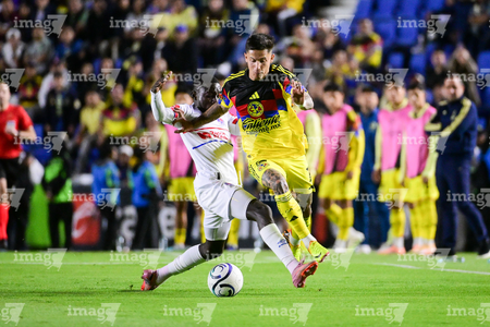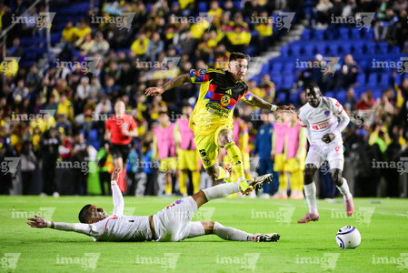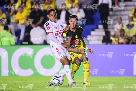 Ciudad de México, 11 de febrero de 2026. Brian Rodríguez y Agustin Mulet, durante el partido de vuelta de la primera ronda de la Champions Cup de la CONCACAF 2026, entre las Águilas del América y el CD Olimpia, realizado en el estadio Ciudad de los Deportes. Foto: Imago7/ Alexis Chavez