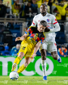 Ciudad de México, 11 de febrero de 2026. Yustin Arboleda en reclamo, durante el partido de vuelta de la primera ronda de la Champions Cup de la CONCACAF 2026, entre las Águilas del América y el CD Olimpia, realizado en el estadio Ciudad de los Deportes. Foto: Imago7/ Alexis Chavez