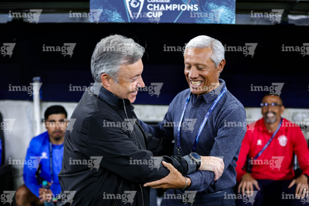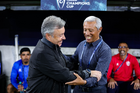 Guadalupe, Nuevo León, 11 de febrero de 2026. Domenec Torrent, director técnico y Roberto Hernández, director técnico, durante el partido de vuelta de la primera ronda de la Champions Cup de la CONCACAF 2026, entre los Rayados del Monterrey y el Xelajú MC, realizado en el estadio BBVA. Foto: Imago7/ Nora Pamela