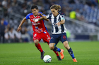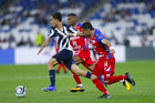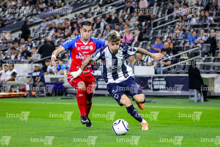 Guadalupe, Nuevo León, 11 de febrero de 2026. Luca Orellano (I), durante el partido de vuelta de la primera ronda de la Champions Cup de la CONCACAF 2026, entre los Rayados del Monterrey y el Xelajú MC, realizado en el estadio BBVA. Foto: Imago7/ Nora Pamela