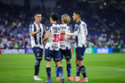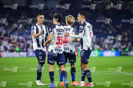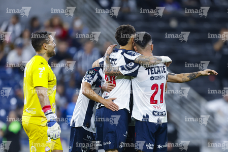 Guadalupe, Nuevo León, 11 de febrero de 2026. Jugadores de Monterrey en festejo de gol, durante el partido de vuelta de la primera ronda de la Champions Cup de la CONCACAF 2026, entre los Rayados del Monterrey y el Xelajú MC, realizado en el estadio BBVA. Foto: Imago7/