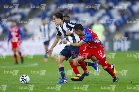 Guadalupe, Nuevo León, 11 de febrero de 2026. Fidel Ambríz (I), durante el partido de vuelta de la primera ronda de la Champions Cup de la CONCACAF 2026, entre los Rayados del Monterrey y el Xelajú MC, realizado en el estadio BBVA. Foto: Imago7/