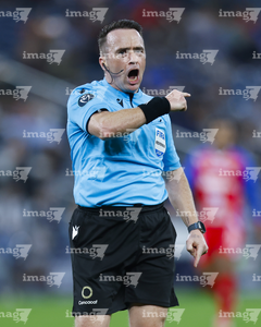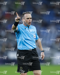 Guadalupe, Nuevo León, 11 de febrero de 2026. Pierre-Luc Lauzière, árbitro central, durante el partido de vuelta de la primera ronda de la Champions Cup de la CONCACAF 2026, entre los Rayados del Monterrey y el Xelajú MC, realizado en el estadio BBVA. Foto: Imago7/