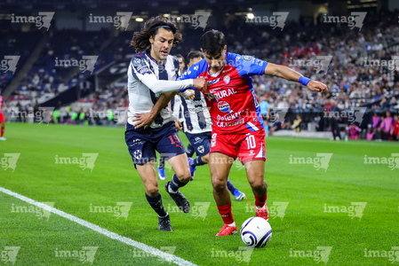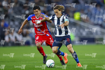 Guadalupe, Nuevo León, 11 de febrero de 2026. Antonio Lopez y Oliver Torres, durante el partido de vuelta de la primera ronda de la Champions Cup de la CONCACAF 2026, entre los Rayados del Monterrey y el Xelajú MC, realizado en el estadio BBVA. Foto: Imago7/David Arzamendi