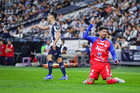 Guadalupe, Nuevo León, 11 de febrero de 2026. Víctor Guzmán en lamento, durante el partido de vuelta de la primera ronda de la Champions Cup de la CONCACAF 2026, entre los Rayados del Monterrey y el Xelajú MC, realizado en el estadio BBVA. Foto: Imago7/ Nora Pamela