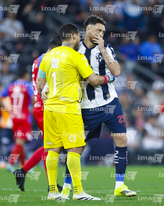 Guadalupe, Nuevo León, 11 de febrero de 2026. Uros Durdevic en lamento, durante el partido de vuelta de la primera ronda de la Champions Cup de la CONCACAF 2026, entre los Rayados del Monterrey y el Xelajú MC, realizado en el estadio BBVA. Foto: Imago7/ Nora Pamela