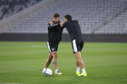 San Diego, California, Estados Unidos, 10 de marzo de 2026. Bruno Mendez y Federico Pereira, durante un entrenamiento previo a la ida de los Octavos de Final de la Champions Cup 2026 de la CONCACAF, entre San Diego FC y los Diablos Rojos del Toluca, realizada en el Snapdragon Stadium. Foto: Imago7/ Rafael Vadillo