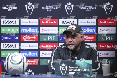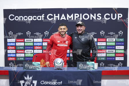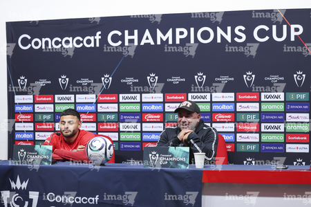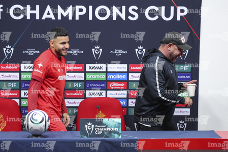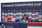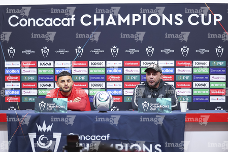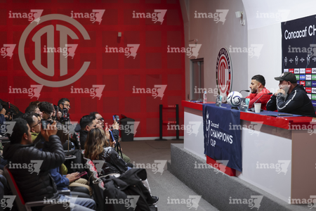 Toluca, Estado de México, 17 de marzo de 2026. Alexis Vega y Antonio Mohamed, durante una conferencia de prensa previo a la vuelta de los Octavos de Final de la Champions Cup 2026 de la CONCACAF, entre los Diablos Rojos del Toluca y el San Diego FC, realizada en el estadio Nemesio Diez. Foto: Imago7/ Rafael Vadillo