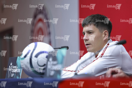 Toluca, Estado de México, 7 de abril de 2026. Antonio Mohamed, durante una conferencia de prensa previo a la ida de los Cuartos de Final de la Champions Cup 2026 de la CONCACAF, entre los Diablos Rojos del Toluca y el LA Galaxy, realizada en el estadio Nemesio Diez. Foto: Imago7/ Rafael Vadillo