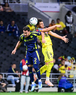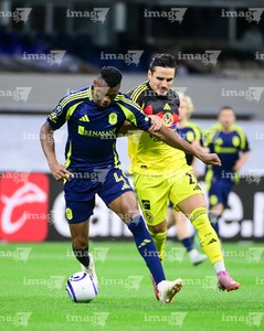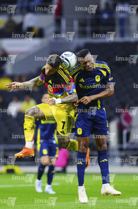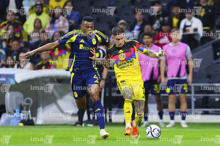 Ciudad de México, 14 de abril de 2026. Jeisson Palacios y Raphael Veiga, durante el partido de vuelta de los Cuartos de Final de la Champions Cup de la CONCACAF 2026, entre las Águilas del América y el Nashville SC, realizado en el estadio Ciudad de los Deportes. Foto: Imago7/ Alexis Chavez