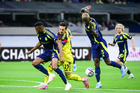 Ciudad de México, 14 de abril de 2026. Jeisson Palacios, Raphael Veiga y Maxwell Woledzi, durante el partido de vuelta de los Cuartos de Final de la Champions Cup de la CONCACAF 2026, entre las Águilas del América y el Nashville SC, realizado en el estadio Ciudad de los Deportes. Foto: Imago7/ Alexis Chavez