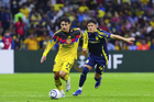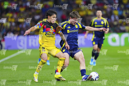 Ciudad de México, 14 de abril de 2026. Andy Najar y Brian Rodríguez, durante el partido de vuelta de los Cuartos de Final de la Champions Cup de la CONCACAF 2026, entre las Águilas del América y el Nashville SC, realizado en el estadio Ciudad de los Deportes. Foto: Imago7/ Manlio Contreras