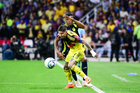Ciudad de México, 14 de abril de 2026. Maxwell Woledzi y Raphael Veiga, durante el partido de vuelta de los Cuartos de Final de la Champions Cup de la CONCACAF 2026, entre las Águilas del América y el Nashville SC, realizado en el estadio Ciudad de los Deportes. Foto: Imago7/ Alexis Chavez