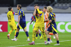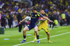 Ciudad de México, 14 de abril de 2026. Brian Rodríguez y Jeisson Palacios, durante el partido de vuelta de los Cuartos de Final de la Champions Cup de la CONCACAF 2026, entre las Águilas del América y el Nashville SC, realizado en el estadio Ciudad de los Deportes. Foto: Imago7/ Manlio Contreras