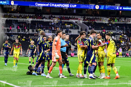 Ciudad de México, 14 de abril de 2026. Jugadores del Club América y Jugadores de Nashville en conato de bronca, durante el partido de vuelta de los Cuartos de Final de la Champions Cup de la CONCACAF 2026, entre las Águilas del América y el Nashville SC, realizado en el estadio Ciudad de los Deportes. Foto: Imago7/ Alexis Chavez