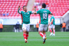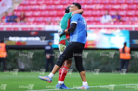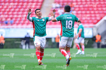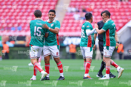 Zapopan, Jalisco, 3 de marzo de 2026. Juan Carlos Medina y Néstor Calderón en festejo de gol, durante un partido amistoso de la Copa de Leyendas, entre Leyendas de México y Leyendas de Jalisco, realizado en el estadio Akron. Foto: Imago7/ Juan Carlos Cubeyro.