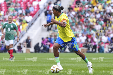 Ciudad de México, 19 de abril de 2026. Ronaldinho, durante un partido amistoso de Leyendas, entre la Selección de México y la Selección de Brasil, realizado en el estadio Banorte. Foto: Imago7/ Manlio Contreras