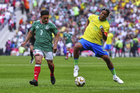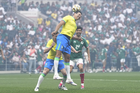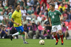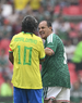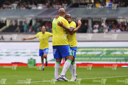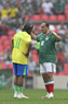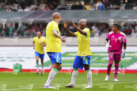 Ciudad de México, 19 de abril de 2026. Adriano y Javier Rodríguez "Maza", durante un partido amistoso de Leyendas, entre la Selección de México y la Selección de Brasil, realizado en el estadio Banorte. Foto: Imago7/ Etzel Espinosa