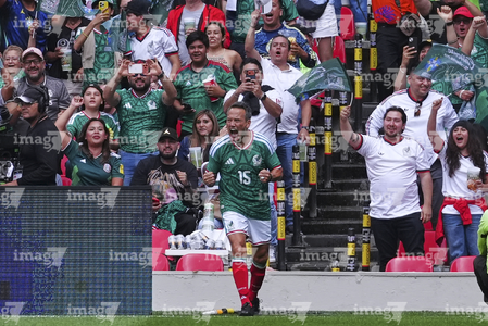 Ciudad de México, 19 de abril de 2026. en festejo de gol durante un partido amistoso de Leyendas, entre la Selección de México y la Selección de Brasil, realizado en el estadio Banorte. Foto: Imago7/ Etzel Espinosa