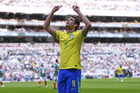 Ciudad de México, 19 de abril de 2026. Adriano en festejo de gol, durante un partido amistoso de Leyendas, entre la Selección de México y la Selección de Brasil, realizado en el estadio Banorte. Foto: Imago7/ Manlio Contreras