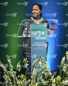 Querétaro, Querétaro a 26 de Febrero de 2026. Mariana Gutiérrez, Presidenta, Liga BBVA MX Femenil durante el segundo día de actividades del segundo congreso de fútbol formativo, el modelo de desarrollo mexicano, llevado a cabo en el centro de congresos y convenciones.