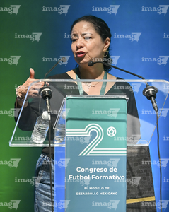 Querétaro, Querétaro a 26 de Febrero de 2026. Sandra Morales, Directora General de Formación Académica, FMF, durante el segundo día de actividades del segundo congreso de fútbol formativo, el modelo de desarrollo mexicano, llevado a cabo en el centro de congresos y convenciones.