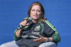 Querétaro, Querétaro a 26 de Febrero de 2026. Andrea Rodebaugh, Directora de Selecciones Nacionales Femeniles, FMF durante el segundo día de actividades del segundo congreso de fútbol formativo, el modelo de desarrollo mexicano, llevado a cabo en el centro de congresos y convenciones.